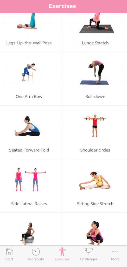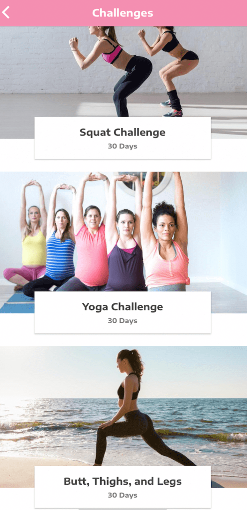 Pregnancy is free an app that provides an exercise program for women who are planning on becoming pregnant, are pregnant or have just had a baby. In addition to daily workouts the app provides 30-day challenges such as a squat, yoga and butt/thigh/leg challenge. In these challenges you do the same exercise but each day but increases in duration and intensity as you get stronger.